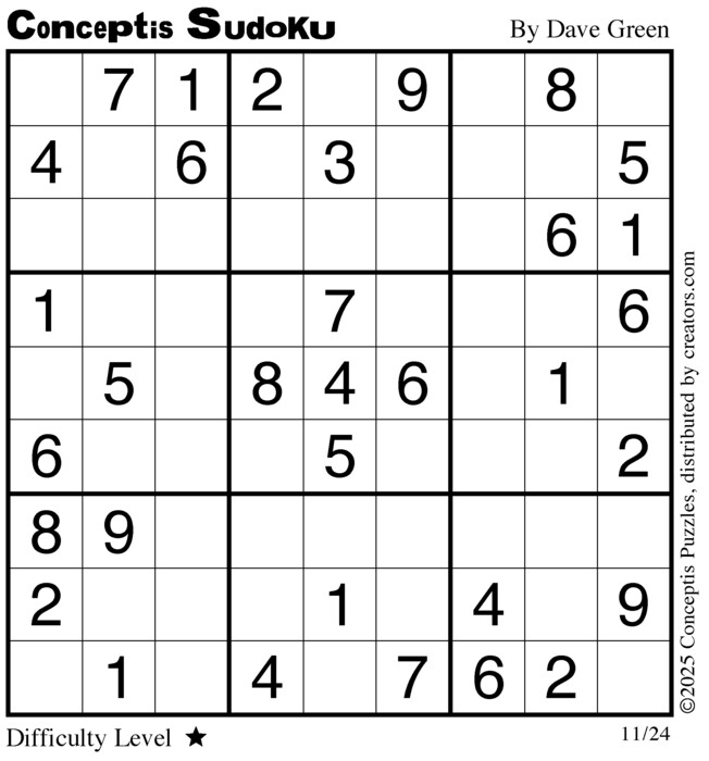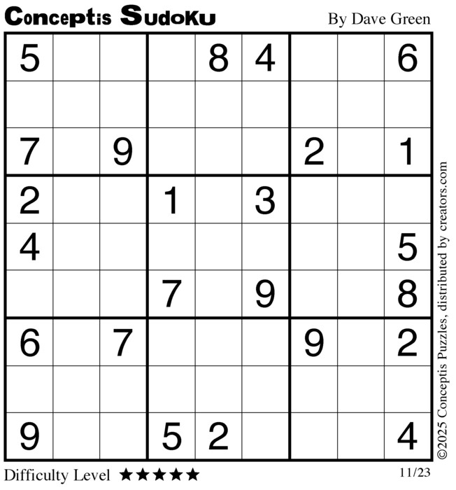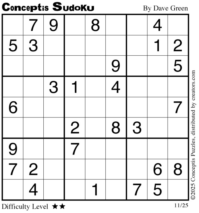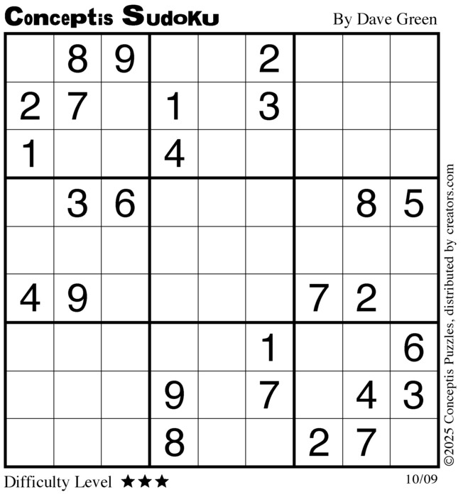 Each puzzle consists of a 9x9 grid containing given clues in various places. The object is to fill all empty squares so that the numbers 1 to 9 appear exactly once in each row, column and 3x3 box.